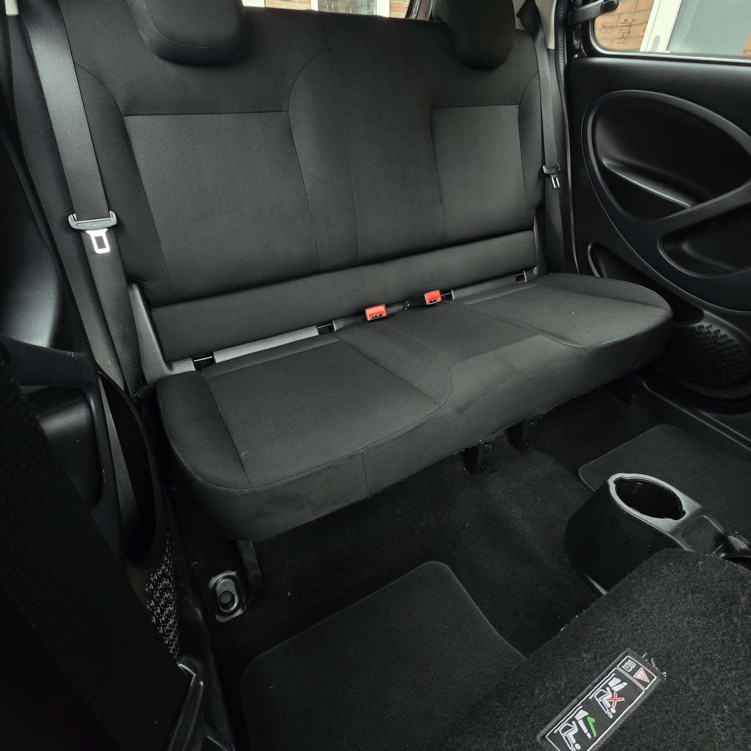 Grondige interieurreiniging voor uw voertuig. Het volledige interieur krijgt een dieptereiniging met stoom en een extractieapparaat; leren bekleding wordt gereinigd en verzorgd met een conditioner, terwijl matten en stoffen stoelen een intensieve shampoo‑extractie ondergaan
